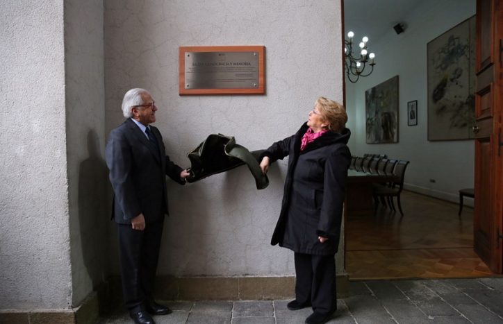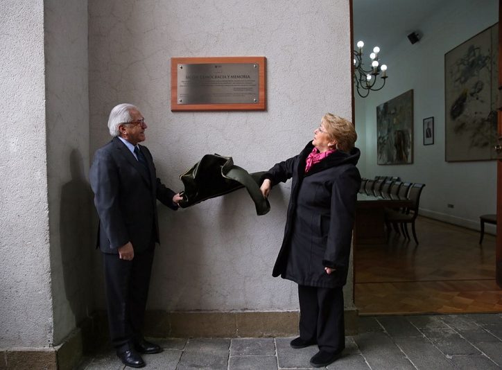 La Presidenta Michelle Bachelet develó, junto al ministro del Interior Mario Fernández, la placa que da nombre al salón “Democracia y Memoria” en La Moneda, en el marco de las conmemoraciones del 11 de septiembre.