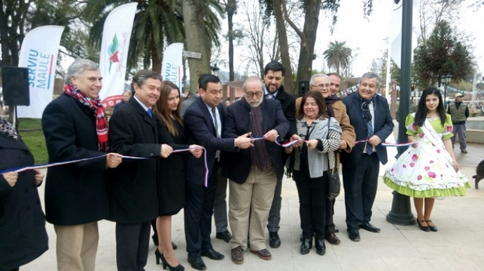 Autoridades regionales llegaron hasta la Plaza de Armas de la comuna de Sagrada Familia, donde realizaron un recorrido por el lugar, para luego realizar la inauguración de ésta, la que tuvo una inversión de $ 680.626.264 millones.