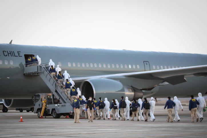 A través de un vuelo de la FACh que despegó desde la Base Aérea Los Cóndores en la ciudad de Iquique se regresaron a sus respectivos países un total de 86 ciudadanos venezolanos y colombianos, a los que se sumaron otros 52 peruanos y bolivianos que salieron por vía terrestre.