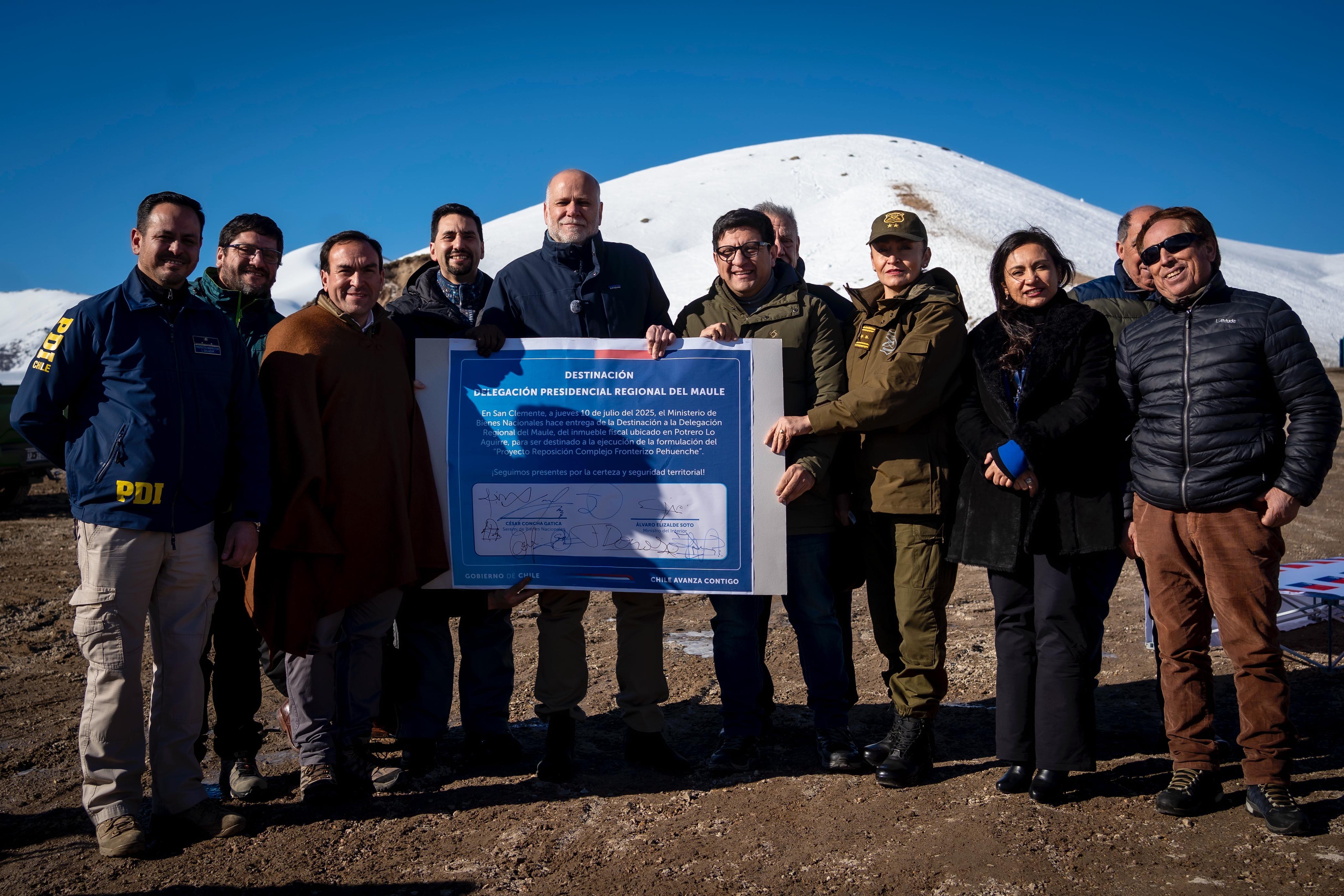 Jueves 10 de Julio de 2025.- El ministro del Interior, Álvaro Elizalde, visitó hoy el Complejo Fronterizo Pehuenche, ubicado en la Región del Maule, donde participó en la firma de la destinación de un terreno por parte del Ministerio de Bienes Nacionales que permitirá avanzar en el plan de reposición del recinto, con miras a fortalecer y modernizar sus operaciones.