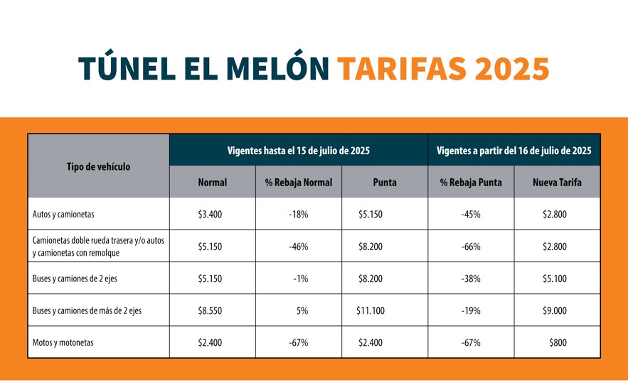 Además, agregó: «Hoy iniciamos una nueva etapa en la modernización de la Ruta 5 Norte, con una rebaja efectiva en las tarifas del Túnel El Melón que beneficia directamente a quienes transitan por esta vía clave para el país. Esta segunda concesión de la Ruta Santiago–Los Vilos comenzó a regir en febrero de este año, y a partir de este 16 de julio veremos este primer efecto concreto”.
