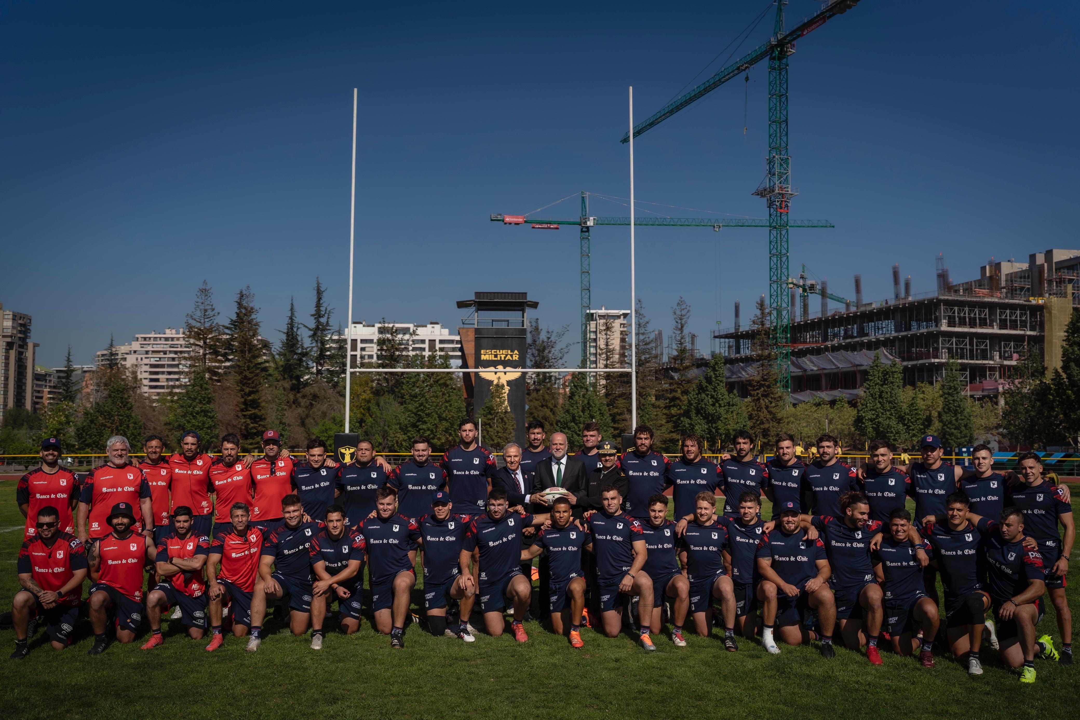 La autoridad acudió al centro de entrenamiento del equipo nacional ubicado en la Escuela Militar, donde fue recibido por el vicepresidente de la Federación de Rugby de Chile, Raúl Sigren, quien valoró el respaldo del Ejecutivo a la ampliación del aforo para el encuentro, que define un cupo para el Mundial de Australia de 2027.