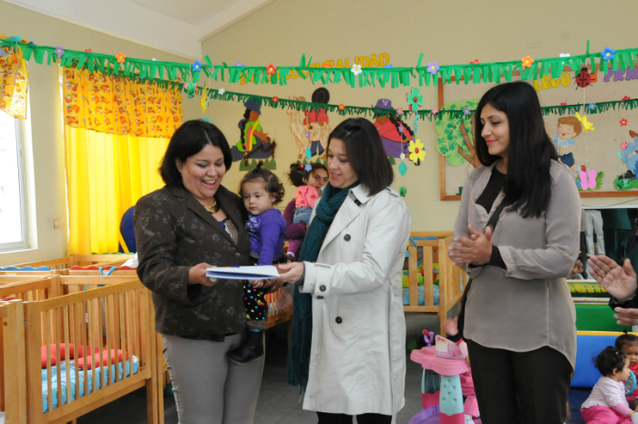 La entrega del documento, que se enmarca en el compromiso de la Presidenta Michelle Bachelet de ampliar cobertura en salas cuna, fue formalizada por la intendenta (S), Andrea Murillo; la seremi de Bienes Nacionales, Ingrid Robles y la directora regional (TyP) JUNJI, Sandra Flores, quienes se trasladaron hasta el jardín infantil Rayito de Sol, donde compartieron con las niñas, niños y educadoras; así también observaron las metodologías para potenciar el desarrollo de los párvulos desde la sala cuna.