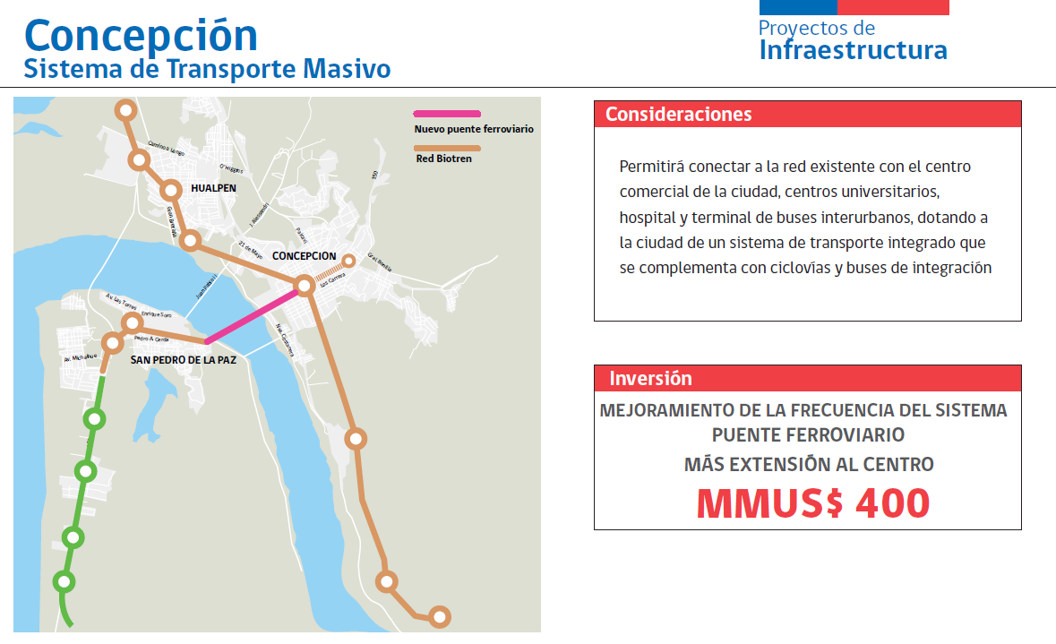 Todos estos proyectos combinados exigirán una inversión que superará los 400 millones de dólares en el Gran Concepción.