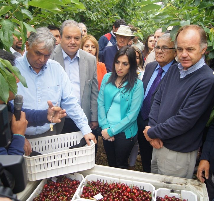 La comitiva compuesta además por la Gobernadora de la Provincia de Curicó, Cristina Bravo, el Seremi de Agricultura, Jorge Céspedes, el Presidente del CORE, Boris Tapia, y el Alcalde de Curicó, Javier Muñoz, entre otras autoridades locales y regionales, visitó un predio en plena cosecha de cerezas, constatando el funcionamiento de dos planteles al interior del fundo, con distintas tecnologías de manejo y cosecha.