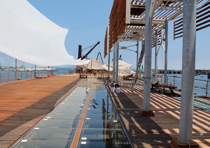 El muelle cuenta con la instalación de 98 pilotes, 1.900 metros cuadrados de madera de roble, espacios de vidrios en la base denominadas “ventanas del tiempo”, barandas, una chaza deportiva para paseos y actividades náuticas, sombreaderos y bancas.