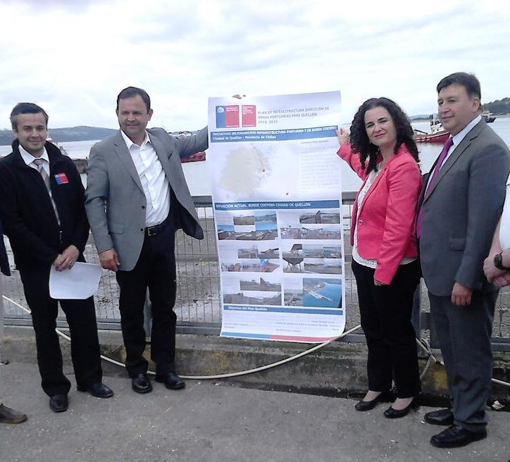 El Intendente de la Región de Los Lagos, Nofal Abud, la Directora Nacional de Obras Portuarias, Antonia Bordas y el Alcalde de Quellón, Cristián Ojeda, encabezaron este jueves 22 de enero el lanzamiento del Plan de Infraestructura Portuaria y Costera para Quellón , que se ejecutará entre el 2015 y 2019.