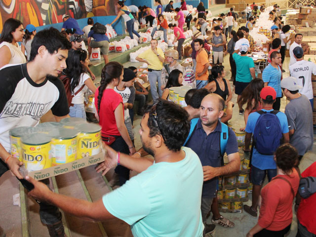 Una de ellas es Charlotte Jiménez, de 16 años y alumna del Liceo de Música, que vino a cooperar: “En mi casa no pasó nada así que si un puede tiene que ayudar. Supe por amigos y por la televisión que se está haciendo este trabajo y ya llevo 4 días acá. Estoy cansada porque tuve que cargar cajas, pero no me importa porque estoy ayudando”.