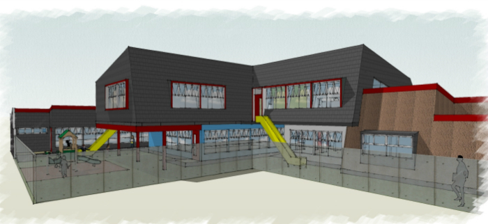 Esta nueva sala cuna y jardín infantil contará con 4 salas de actividades, patios cubiertos, áreas de administración y zonas de servicios, con una superficie total proyectada 849,27m² organizados en dos pisos.