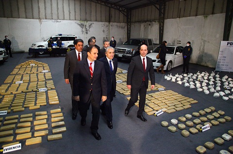 El decomiso de droga más grande de la historia que se haya realizado en el sur de Chile fue dado a conocer por el intendente del Bío Bío, Rodrigo Díaz, junto al director general de la Policía de Investigaciones, Héctor Espinosa; y el fiscal regional, Julio Contardo, en el Cuartel Antinarcóticos de la PDI.
