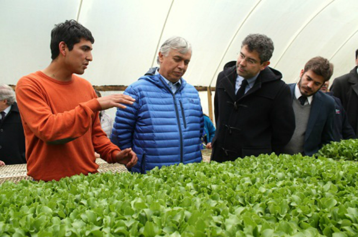 El ministro de Agricultura, Carlos Furche, junto al intendente de la Araucanía, Andrés Jouannet; al director nacional de INDAP, Octavio Sotomayor, y al director nacional de la Conadi, Alberto Pizarro, realizaron una visita a un grupo de 15 emprendedores mapuches que producen hortalizas en la comuna de Vilcún que, en el mes de enero perdieron la totalidad de su producción como consecuencia de la sequía y que han logrado recuperarse con apoyo del Ministerio y del Gobierno Regional.