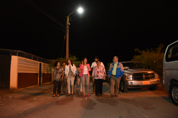 Además, la jefa del Gobierno Regional, comentó a los vecinos del barrio cómo se iluminará la Región de Arica y Parinacota con el proyecto “Recambio de Luminarias de Alumbrado Público”, iniciativa que cuenta con una inversión que superará los $9 mil millones, los cuales serán ejecutados entre los años 2016, 2017 y 2018, gracias a la aprobación del Consejo Regional.