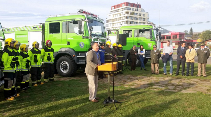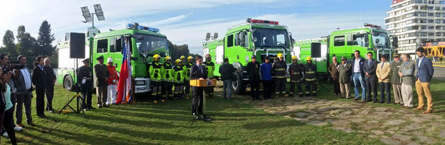 La entrega consideraba tres carros forestales para las comunas de Mariquina, Panguipulli y Futrono; además de un carro de rescate para la comuna de Lanco. Los primeros vehículos poseen como principal característica que son de doble tracción y cuentan con un estanque de 3 mil litros. En tanto el de rescate corresponde a un vehículo estándar de tracción 4×2 y con un estanque de mil litros, que permitirá reemplazar un furgón 2005 que cumplía dichas funciones.