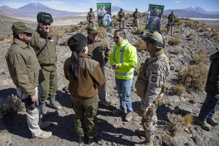 Por su parte, el teniente coronel Alejandro Zuleta, comandante de la Brigada Motorizada de Calama se suma al trabajo y expresa que “El Ejército se integra desde la perspectiva de la seguridad a través de una unidad que es dependiente de la unidad motorizada, la unidad de desminado humanitaria. Esta está trabajando permanentemente en la frontera, ya de un total 64 campos minados y áreas peligrosas que existían en la zona se han levantado 54 pero a la fecha existen 11 activas, en las cuales 4 está trabajando permanentemente la institución y desde esa perspectiva la institución asegura el trabajo que hace el gobierno junto a carabineros en esta campaña de cerrar los pasos inhabilitados”.