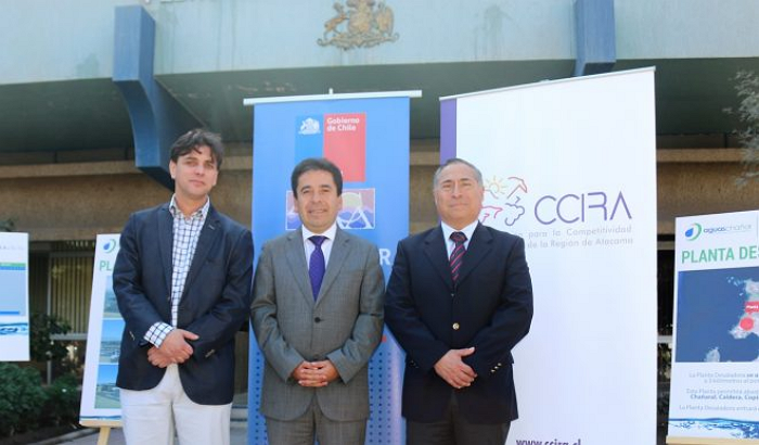 El intendente de Atacama, Miguel Vargas, acompañado por el gerente general de la Corporación para la Competitividad e Innovación de la Región de Atacama (CCIRA), Ibar Espinoza y el gerente general de Aguas Chañar, Enrique Calcagni, informaron que la planta desalinizadora comenzará a ser construida el año 2017, ya que es un hecho su aprobación por parte de la CEA y la Crubc.
