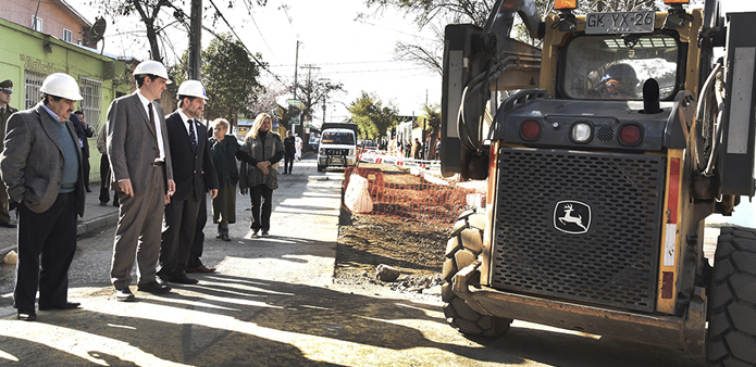 Autoridades encabezadas por el ministro de Transportes, Andrés Gómez-Lobo, y el intendente metropolitano, Claudio Orrego, realizaron este miércoles una visita inspectiva a las obras de reparación de una de las calles beneficiadas por el “Plan de Conservación de Vías”, que busca recuperar 28 calles en mal estado por las que circulan buses del Transporte Púbico Metropolitano.
