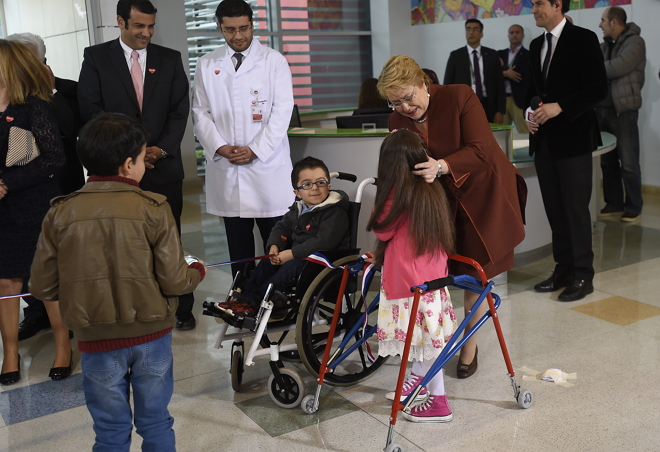 La Presidenta de la República, Michelle Bachelet, acompañada por los ministros de Obras Públicas, Alberto Undurraga; y de Desarrollo Social, Marcos Barraza; y el Intendente de la Región Metropolitana, Claudio Orrego, participó en la inauguración de las obras de ampliación del Instituto Teletón Santiago y el lanzamiento de la campaña 2017 “Teletón, el abrazo de todos”, a realizarse el 1 y 2 de diciembre de este año y cuya meta será de $ 32.040.179.848.