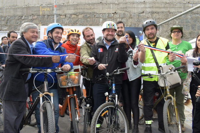 El Intendente de la Región Metropolitana, Claudio Orrego, junto al alcalde de Independencia, Gonzalo Durán, y a representantes de agrupaciones de ciclistas inauguraron esta mañana por segundo año consecutivo el Ciclopaseo “Mapocho Pedaleable Provisorio”, que une Providencia con Recoleta, y que es la antesala del proyecto definitivo, que se empezaría a construir a partir del próximo año.
