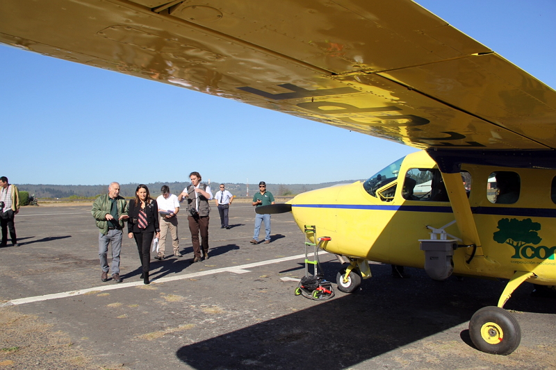 Por su parte, el director regional (i) de Conaf, Sandro Bruzzone, detalló que el avión de comunicación y observación puede “captar, mediante imágenes de alta resolución, lo que está ocurriendo en terreno, y entrega en tiempo real esta información a nuestra central de comando, que puede ser fija o móvil. Además, entrega imágenes que revelan la temperatura de un incendio en un momento determinado, mediante un sistema infrarrojo, y eso nos permite ver con facilidad puntos calientes o a dónde se dirige el fuego”.