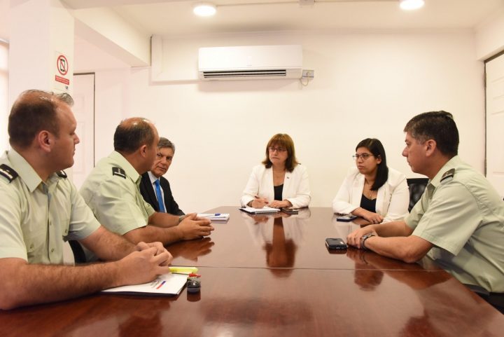 Arica, viernes 19 de octubre de 2018.- La reinserción social y la seguridad ciudadana, fueron los temas principales tratados en una reunión de trabajo entre la intendenta María Loreto Letelier; el director de Gendarmería, coronel Roberto Maldonado; la jefa de División de Gobierno Interior, Andrea Balladares, y el seremi de Justicia, Raúl Gil.