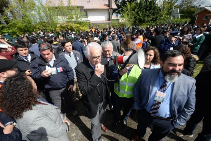 Desde el frontis del edificio de la Gobernación Provincial de Llanquihue – ubicado en plena zona de inundabilidad ante tsunamis – las autoridades encabezadas por el Intendente, Harry Jürgensen, el Director Nacional (s) de ONEMI, Cristóbal Mena, y el Director de ONEMI Los Lagos, Alejandro Vergés, dieron el vamos al proceso de evacuación que contempló la participación de quienes habitan en el borde costero de 21 comunas hacia los distintos puntos de encuentro ubicados sobre la cota 30.