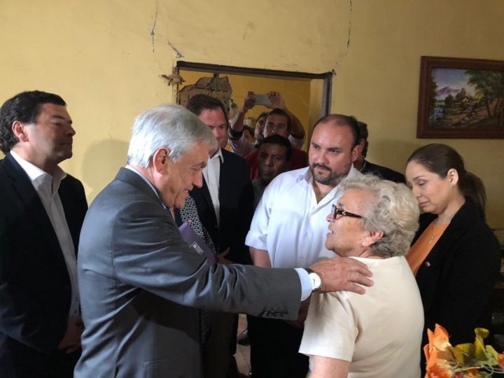 Luego del sismo de gran magnitud que afectó a la región de Coquimbo el pasado sábado, el Presidente Sebastián Piñera viajó hasta la zona y, junto a la Intendenta Lucía Pinto, recorrió los lugares más afectados para luego anunciar un plan de reconstrucción inmediato para sus habitantes.