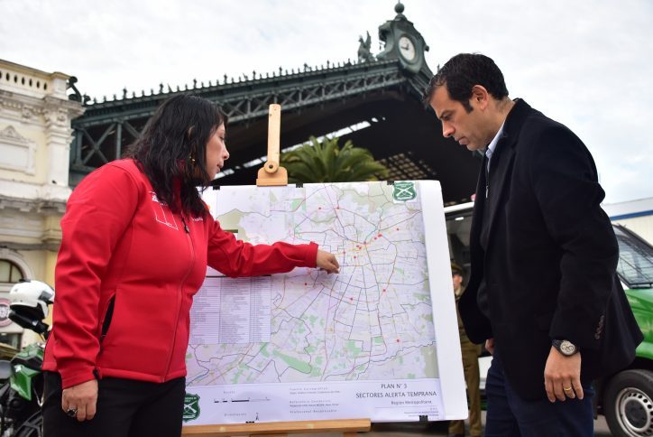 La Intendenta de la Región Metropolitana de Santiago, Karla Rubilar, junto al Jefe de la Zona de Carabineros Santiago Oeste, general Enrique Monrás, y al alcalde de Estación Central, Rodrigo Delgado, anunciaron el Plan de Desplazamiento Seguro Matutino, que consiste en el reforzamiento policial de 95 puntos de la capital para la prevención de delitos ocurridos durante las mañanas.