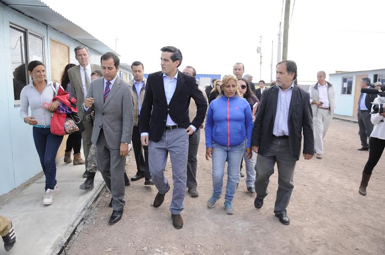 Entregando las primeras 40 viviendas del barrio de emergencia instalado en Alto Hospicio, el titular de Interior agradeció a los propios vecinos, que han colaborado activamente a la reconstrucción.
