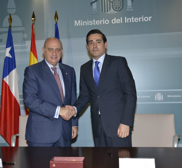 A primera hora de la mañana en España, el ministro del Interior y Seguridad Pública de Chile, Rodrigo Peñailillo, se reunió con su par del Gobierno español, Jorge Fernández Díaz. En la ocasión, la autoridad chilena estuvo acompañado del Director de la Agencia Nacional de Inteligencia (ANI), Gustavo Villalobos y el Embajador de Chile en España, Francisco Marambio.
