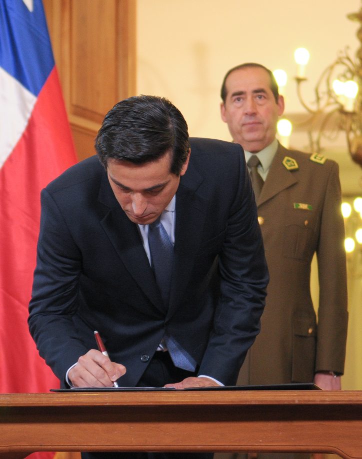En La Moneda, el jefe de gabinete firmó el documento que aumenta las medidas de seguridad.