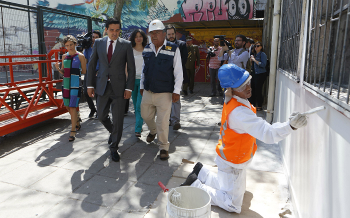 En el Liceo Miguel Luis Amunátegui la autoridad revisó la implementación de la iniciativa que busca remozar los establecimientos de la red pública en todo el país.