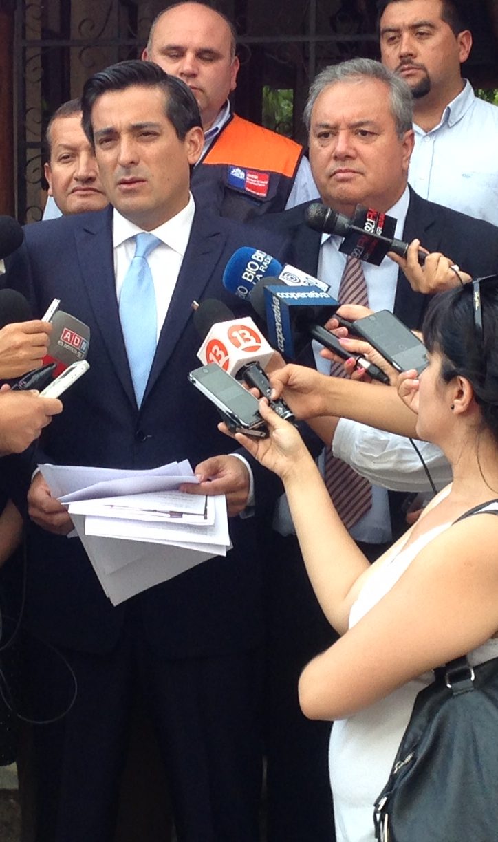 El titular de Interior explicó que “tenemos un incendio muy importante en Casablanca, está fuera de control en este momento, se han quemado cerca de 100 hectáreas y una vivienda, están trabajando brigadas de Conaf, que cuentan con apoyo aéreo y la acción de bomberos” y agregó que “vamos a disponer todos los recursos necesarios para controlar este siniestro”.
