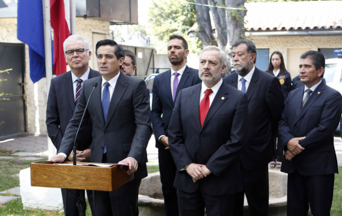 El ministro de Interior y Seguridad Pública, Rodrigo Peñailillo, junto al subsecretario del Interior, Mahmud Aleuy; el subsecretario de Prevención del Delito, Antonio Frey; el Director General de la PDI, Marcos Vásquez y el intendente metropolitano, Claudio Orrego, revisaron los resultados de la primera intervención masiva de puntos de venta de droga en la Región Metropolitana, en el marco de “Microtráfico Cero, Plan Comunal Antidrogas”.