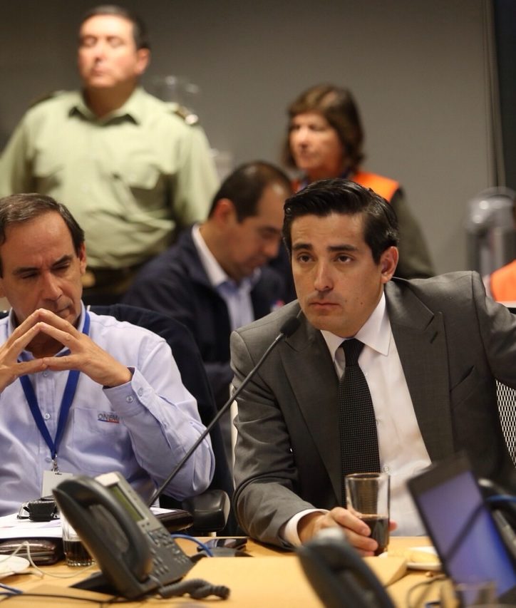 El ministro de Interior y Seguridad Pública, Rodrigo Peñailillo, encabezó el Comité de Operaciones de Emergencia (COE) para coordinar el trabajo del Gobierno en la situación generada por el incremento de la actividad del volcán Calbuco.