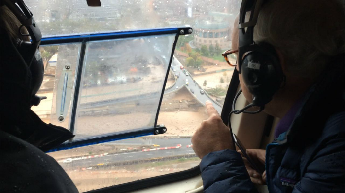 “Desde el aire se puede apreciar que la situación más crítica es lo ocurrido, no por efecto de la naturaleza, sino por efecto de la imprevisión, a mi juicio, de la empresa que está realizando trabajos en el puente Lo Saldes, que produjeron ciertas situaciones que alteraron el cauce normal del río. Obras Públicas ya está trabajando para seguir evitando los efectos. Ya llegará el momento de determinar responsabilidades y tomar las medidas que correspondan”, dijo Burgos en punto de prensa al término del sobrevuelo.