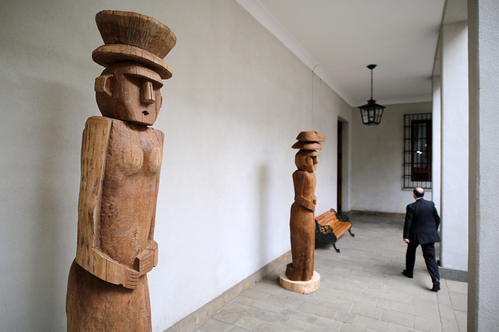 Dos piezas escultóricas similares, de roble y de ciprés, una domomamüll (mujer) y un wentrumamüll (hombre), quedaron instaladas durante esta semana de forma permanente en el Patio los Canelos, bajo las indicaciones de la dirección de patrimonio de la Presidencia de la República y atendiendo a las recomendaciones del área de pueblos indígenas del Ministerio de Desarrollo Social.