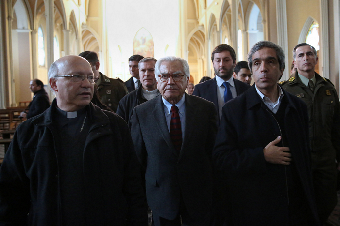 El jefe de gabinete se reunió con el obispo auxiliar Fernando Ramos, el vicario de la zona centro Marek Burzawa y el párroco Galvarino Jofré en la Iglesia Gratitud Nacional que fue atacada por encapuchados, quienes hicieron desmanes y destrozaron el crucifijo.