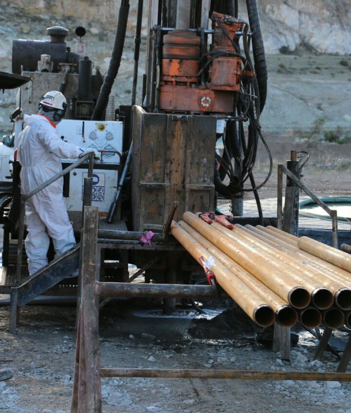 Con la ayuda de máquinas excavadoras se está trabajando en el afianzamiento de una plataforma en dos frentes, para construcción de un talud para el dique o muro de contención de unos 120 metros, y así detener la filtración de agua. La mina se encuentra bajo la Laguna Verde, desde donde habría filtrado el agua que inundó el pique minero, dejando atrapados a los trabajadores.