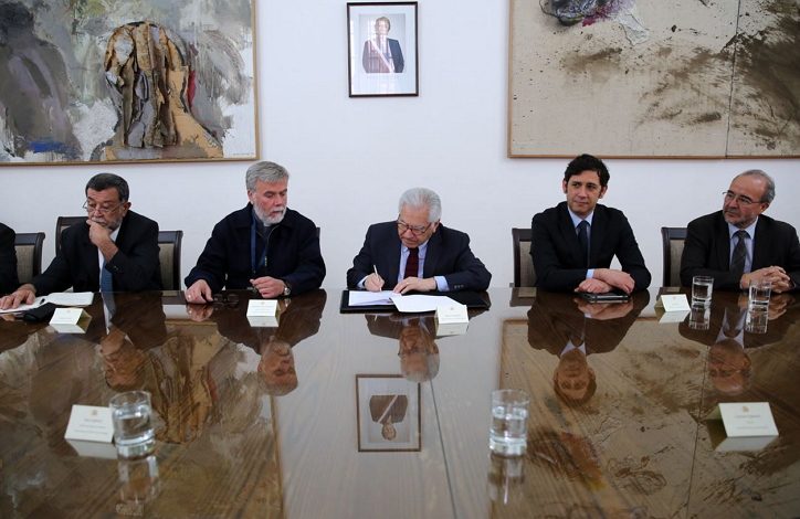En la firma del convenio participaron el ministro del Interior y Seguridad Pública, Mario Fernández y el presidente de la Pastoral Social Caritas Chile, obispo auxiliar de Santiago monseñor Pedro Ossandón.