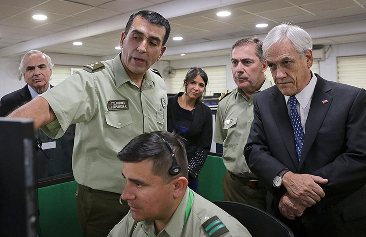 En CENCO, el presidente Piñera se comunicó con supervisores en Arica, Malleco y en la Región Metropolitana, agradeció y respaldo la labor diaria de Carabineros, y dio la orden de desplegar más de 15 mil carabineros en las comunas de todo el país.