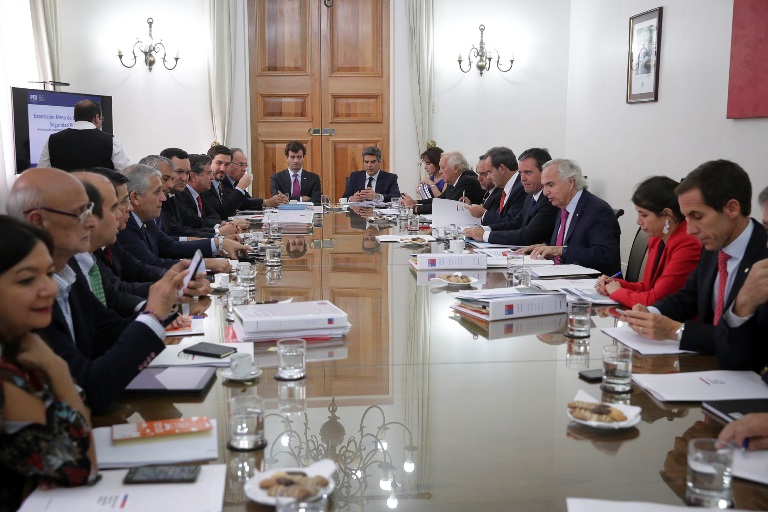 El ministro del Interior y Seguridad Pública, Andrés Chadwick, lideró el trabajo de la Mesa por la Seguridad que está compuesta por actores y expertos de distintos sectores políticos. En la ocasión, la Policía de Investigaciones tuvo la misión de exponer los alcances y especializaciones de su rol investigativo de los delitos.
