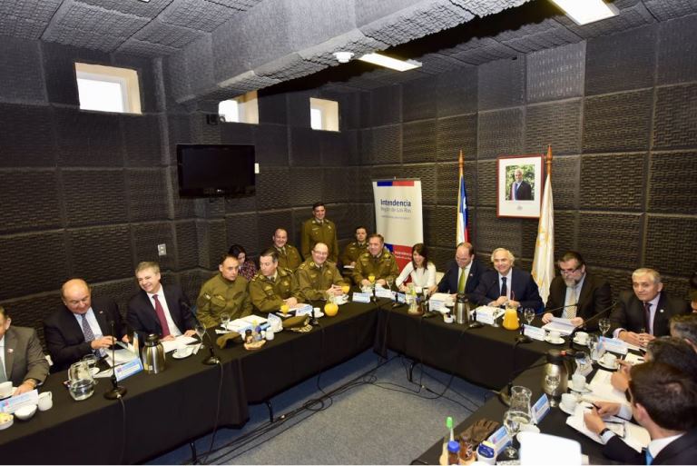 El ministro del Interior, Andrés Chadwick, llegó hasta la Región de Los Ríos a liderar la reunión de la macrozona sur. En ella participaron los subsecretarios del Interior, Rodrigo Ubilla, y de Prevención del Delito, Katherine Martorell, el General Director de Carabineros, Hermes Soto, el Director General de la PDI, Héctor Espinosa, los Intendentes, fiscales, gobernadores y autoridades de Gendarmería de las regiones del Biobío, Araucanía y Los Ríos.