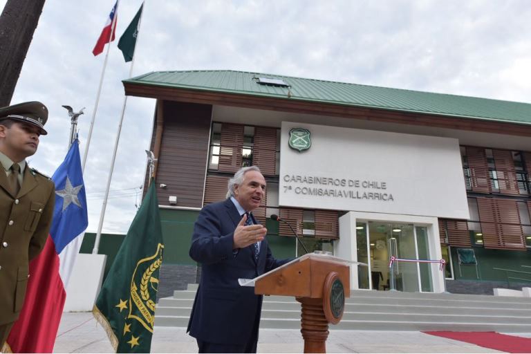 Luego, Chadwick se trasladó hasta la comuna de Villarrica a inaugurar la 7° Comisaría de Carabineros. Las obras del nuevo edificio se iniciaron en 2016, la que tuvo un costo superior a los 2 mil 700 millones de pesos. “Queremos que nuestras comisarías sean el corazón de la institución de Carabineros. Porque aquí está el lugar donde Carabineros está junto la gente cumpliendo su deber en la mejor forma: cercano a la gente, protegiendo a la gente”, señaló el ministro.