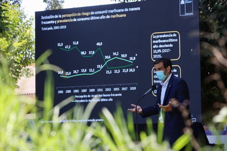 Este martes, el Ministro del Interior y Seguridad Pública, Rodrigo Delgado, en conjunto con el Director Nacional de SENDA, presentaron los principales resultados del Estudio Nacional de Drogas en Población Escolar (ENPE) 2019, el que reveló que un 29,8% de los jóvenes de 8° básico a IV medio reporta haber consumido alcohol durante el último mes, una disminución de 4,2% con respecto al estudio anterior (31,1%). Además, un 26,8% de los jóvenes dice haber consumido marihuana en el último año, una baja de 13,3%, frente al 30,9% registrado en 2017.