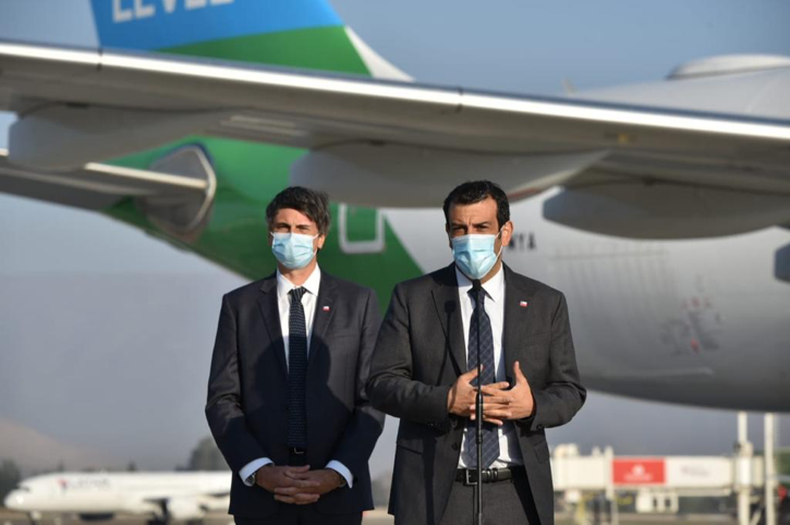 Durante la mañana de este miércoles el ministro del Interior y Seguridad Pública, Rodrigo Delgado, y el ministro de Ciencia, Tecnología, Conocimiento e Innovación, Andrés Couve; recibieron en el aeropuerto Arturo Merino Benitez 43.875 nuevas dosis de la vacuna Pfizer-BioNTech desde Bélgica.