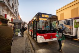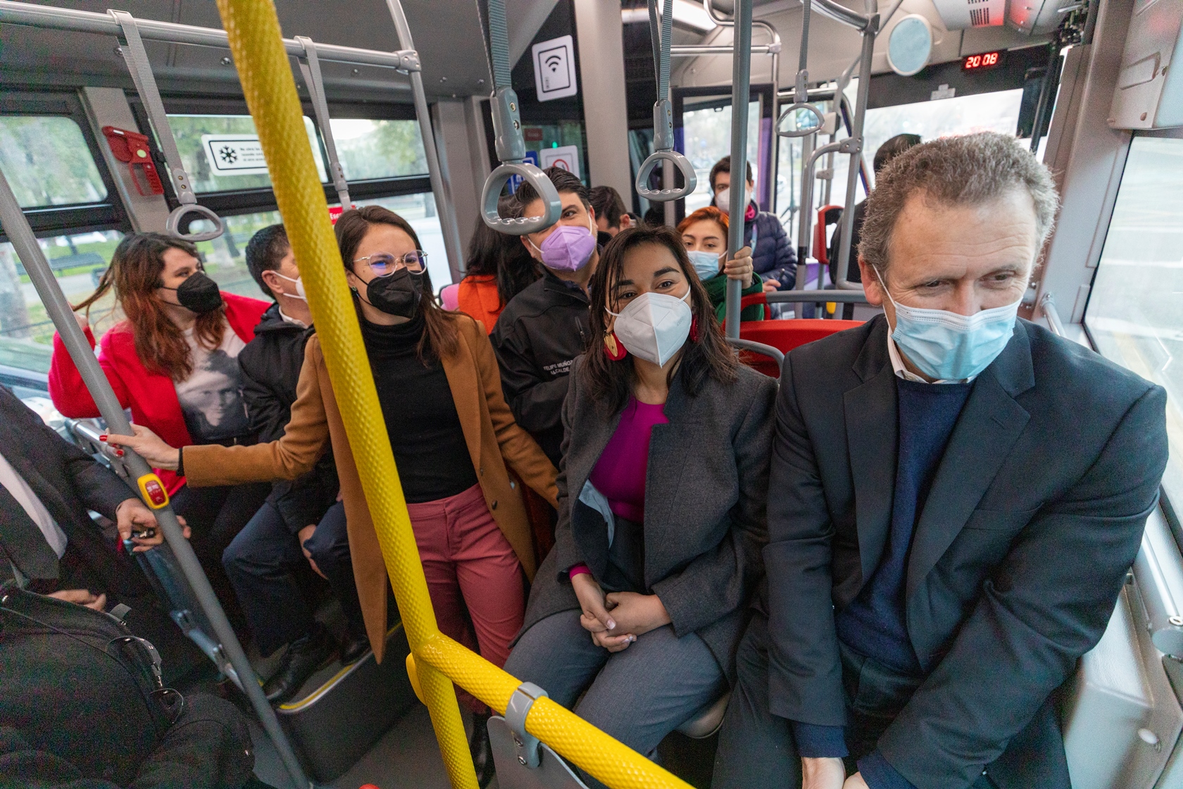 Al término de la actividad, las autoridades realizaron un recorrido en uno de los nuevos buses eléctricos que circulan por barrio Meiggs.