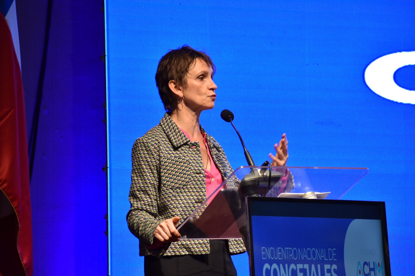 Junto al Subsecretario de Prevención del Delito, Eduardo Vergara, la ministra viajó este lunes a la ciudad de Osorno, para participar en la inauguración del Encuentro Nacional de Concejales y Concejalas, organizado por la Asociación Chilena de Municipalidades, instancia en que destacó que “desde los gobiernos comunales viene iniciativa, creatividad, aporte financiero, sintonía con la comunidad, que nos implica hacer mejor las cosas en materia de seguridad. Por ello, como ministerio del Interior apoyamos muchas de sus iniciativas y estamos trabajando con los municipios para focalizar los recursos allí donde hay más necesidades y vulnerabilidad ante el crimen, ya no a través de concursos”. En efecto, el gobierno se encuentra realizando cambios a la entrega de recursos en materia de seguridad y a partir de 2023, el nuevo Sistema Municipal de Seguridad, SMS, permitirá ampliar la cobertura a cerca del 70% de los municipios del país, focalizando inversiones en aquellas comunas según criticidad delictual, variables socioeconómicas y tamaño de la población, con recursos destinados a prevención social y situacional del delito.