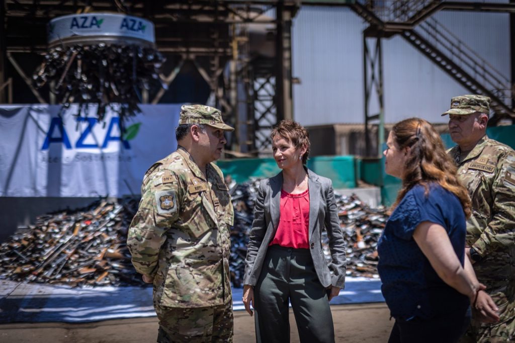 La destrucción de armas se realizó en Aceros AZA, siderúrgica que facilita sus instalaciones para destruir, en forma segura y efectiva estas armas que sirven de materia prima para elaborar uno de los aceros con la huella de carbono más baja de la industria a nivel mundial. Las armas serán transformadas en acero verde, que a diferencia del que se elabora a partir de la extracción del mineral y no del reciclaje de material ferroso, evita la emisión de 17 toneladas de CO2eq, ahorra 20 m3 de agua y 52 MW/h de energía . Todas las armas fueron previamente inutilizadas, almacenadas y custodiadas tanto en el Depósito Central de Carabineros, como en el Regimiento N°2 del Ejército Arsenales de Guerra, para finalmente ser fundidas en los hornos de AZA.