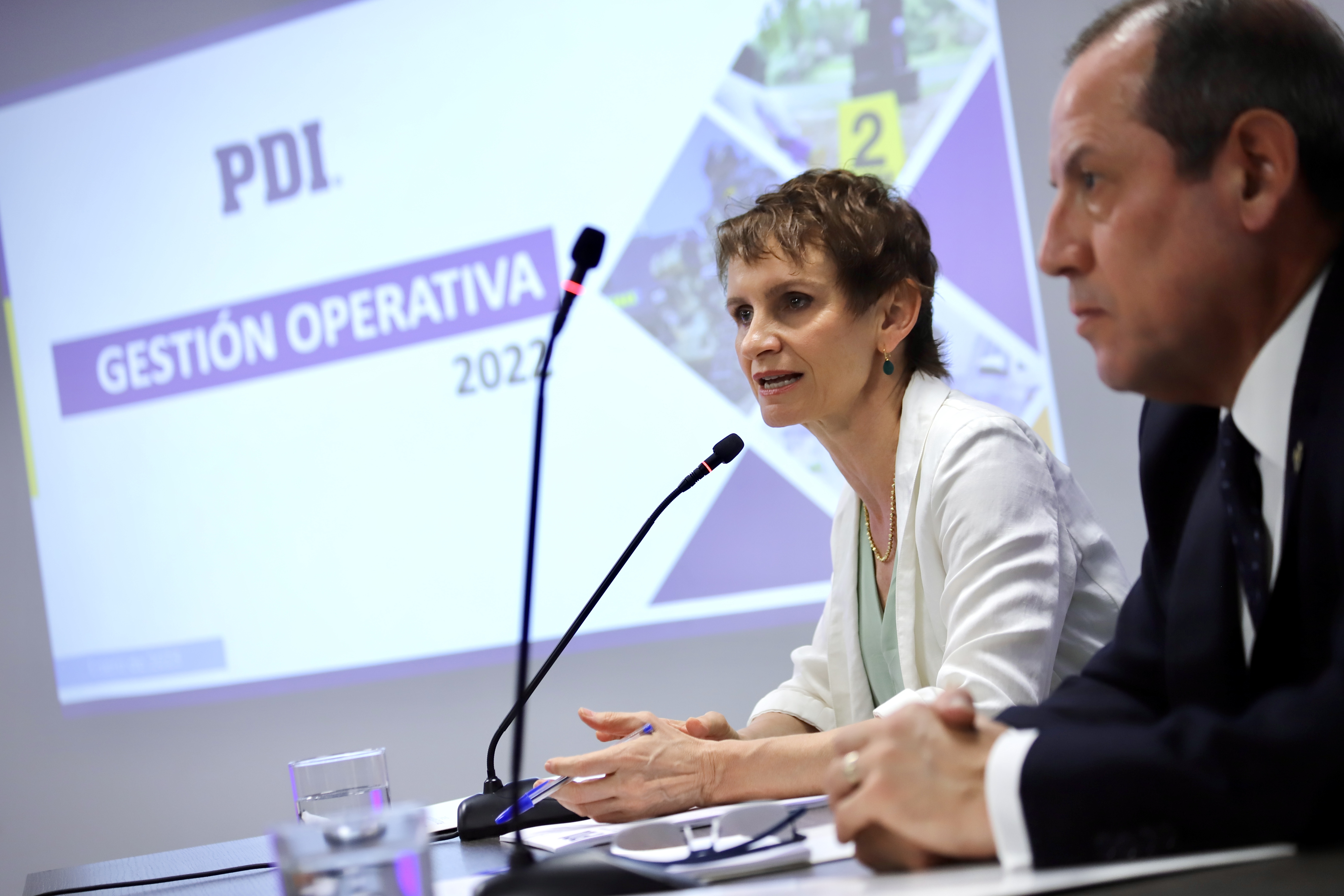 La Ministra del Interior y Seguridad Pública, Carolina Tohá y el Director General de la PDI, Sergio Muñoz, presentaron el balance anual de los resultados operativos de las principales áreas de gestión investigativa de la PDI.