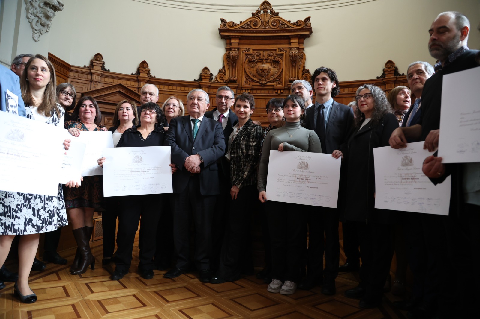En una emotiva ceremonia, Emilio Salinas Tohá, nieto del ex ministro del Interior José Tohá González, recibió el título póstumo de su abuelo, junto a los familiares de Silvio Vicente Pardo Rojas, de la Pontificia Universidad Católica de Valparaíso; Fernando Álvarez Castillo y Jaime Eltit Spielmann, de la Universidad de Concepción y a Littre Quiroga Carvajal, Héctor Mario Silva Iriarte, Fernando Abraham Valenzuela Rivera y Guillermo Osvaldo Vallejos Ferdinand, egresados de la Universidad de Chile, al igual que José Tohá.